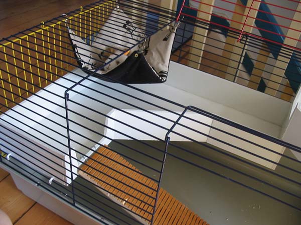 Zum einen wird der sonst eintönige Stall etwas strukturiert, zum anderen ist Deckung für das Sicherheitsempfinden des Fluchttieres Meerschweinchen ausgesprochen wichtig.