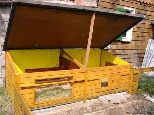 Offene Unterstände (ca. 20-25 cm Deckenhöhe) innerhalb und außerhalb des Stalles sind besonders während der warmen Jahreszeit wichtig. Häuschen können bei großer Wärme schnell zu Hitzefallen werden.