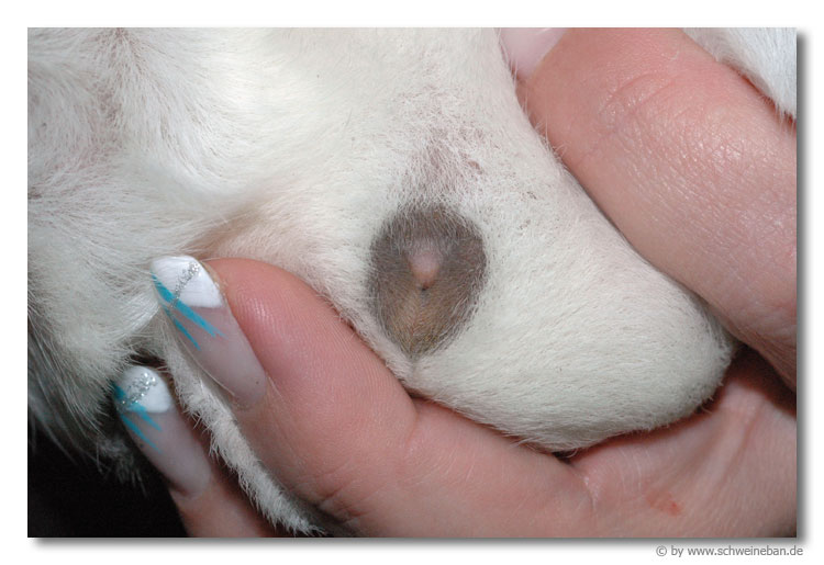Porentief rein muss die Tasche nicht sein, etwas Drüsensekret (gelblich, cremig, geruchsintensiv) innerhalb der Tasche ist bei Böcken normal. Das Sekret wird von den Perinealdrüsen innerhalb der Perinealtasche gebildet, es dient der innerartlichen Kommunikation.